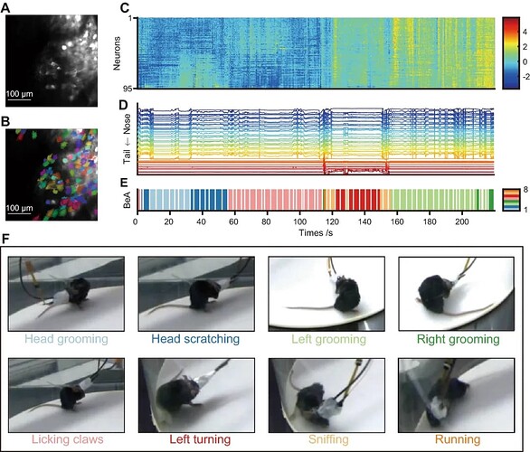 2022年,中科院深圳先进院科研团队在 Neuroscience Bulletin 发表的题为 “ MouseVenue3D : A Markerless Three-Dimension Behavioral Tracking System for Matching Two-Photon Brain Imaging in Free-Moving Mice ” 的研究,用一款名为 MouseVenue3D 的 3D 精细行为追踪系统,把上述痛点一一解决 —— 不仅联合 BehaviorAtlas 自动捕捉小鼠的精细 3D 骨架轨迹,还能和微型双光子显微镜联动,让 “神经活动 - 3D 行为” 的关联分析更精准。 这项研究旨在从小鼠的三维行为中解码出自发的神经元活动,并揭示了高维行为轨迹特征与神经元活动相关。
