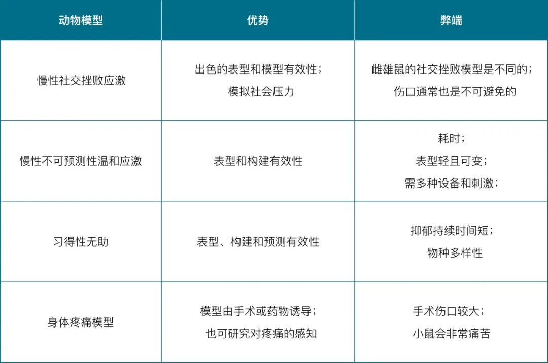 Xiangyun Tian 等人全面比较了这些抑郁症模型的优缺点,以帮助研究人员选择合适的动物模型进行抑郁症研究(表 1)。