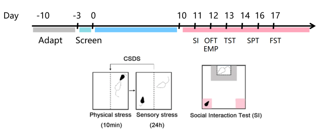 A 慢性社交挫败应激 (Chronic Social Defeat Stress,CSDS)
