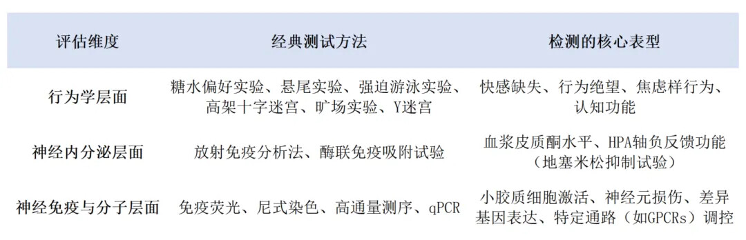 在 CSDS 研究中,行为表型的变化需通过与神经内分泌和分子层面的数据相互印证,才能揭示其内在机制。因此,一套融合了此三个维度的评估体系,是构成一项深入研究的核心。
