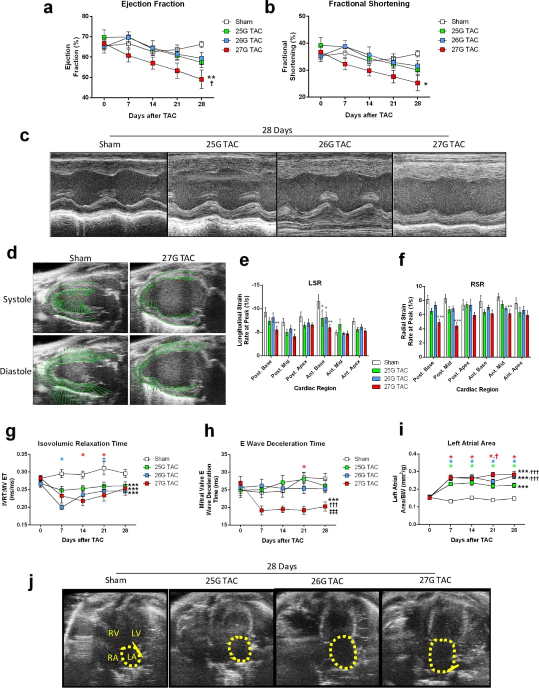 塔夫茨医学中心分子心脏病学研究所的 Daniel A. Richards 团队使用不同规格的针头进行了TAC研究,他们评估了轻度(25G)、中度(26G)和重度(27G)TAC在28天内对小鼠的影响,同时检查器官重量、超声心动图、侵袭性血流动力学、基因表达以及肾脏的结构和功能。
