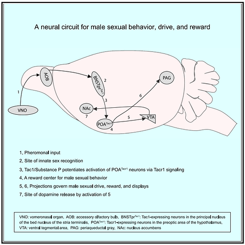 在与特定的MPOA受体结合后,雌二醇和催乳素激活细胞质激酶级联反应和基因组信号通路,从而产生功能活跃和对幼崽有反应的MPOA神经元。细胞质和基因组机制导致两种类型的大脑可塑性:分子和结构。分子可塑性包括增加神经递质、神经调节剂和受体水平,以调节神经电活动。结构可塑性影响神经元形态,包括体细胞大小、“树突”长度、分支和“脊柱”密度的变化。与此同时,来自下丘脑室旁核的催产素到达母体回路的多个区域,包括MPOA、mPFC、BNST、腹侧被盖区、伏隔核、腹侧白球、嗅球和杏仁核”。在这些大脑区域,催产素通过激励和指导大坝的行为。在神经层面上,这涉及到防御-回避神经回路的抑制和奖励-动机神经回路的刺激。MPOA投射抑制防御-回避回路,该回路涉及从嗅球到内侧杏仁核的投射,然后通过下丘脑的前核和腹内侧核到导水管周围灰质。随着防御回避回路的抑制,MPOA的激素激活通过刺激从腹侧被盖区向伏隔核释放多巴胺来调动奖励动机回路。多巴胺对伏隔核壳DI受体的作用增加了腹侧腭对来自基底外侧和基底内侧杏仁核的小波刺激的反应性。从腹侧苍白球到其他基底神经节和运动区域的投射是引发产妇接近行为的关键。