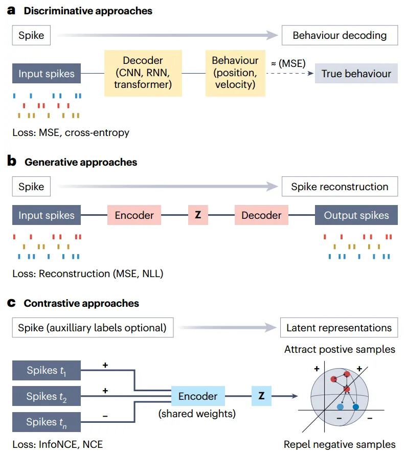 - 潜变量模型: 通过自监督学习提取潜变量(如神经活动的核心特征),再关联行为;