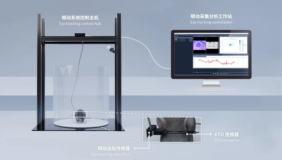 - 动物眼动追踪系统:具备强大的兼容性,支持与视觉刺激、电生理及光遗传技术同步联用,为阿尔茨海默病、孤独症等疾病的视觉认知机制研究与药物评价提供专业工具。