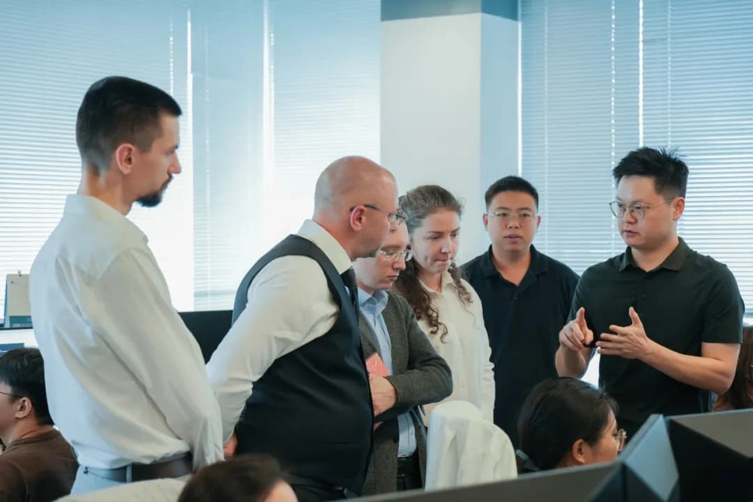 在现场演示环节,一湾生命科技技术专家向代表团系统展示了 3D-AI 动物行为分析系统如何通过先进算法,实现对动物自发行为的精细化、自动化分析;3D-AI 运动功能分析系统又如何精准捕捉神经药理及运动障碍研究中的微观运动变化。此外,动物眼动追踪系统在认知神经科学中的高精度应用,以及动物虚拟现实系统所打造的沉浸式、可编程实验环境,均引起代表团成员的浓厚兴趣。配合一湾生命科技自主研发的软件平台与数据分析能力,整套技术方案的专业性与成熟度获得了来宾的一致好评。
