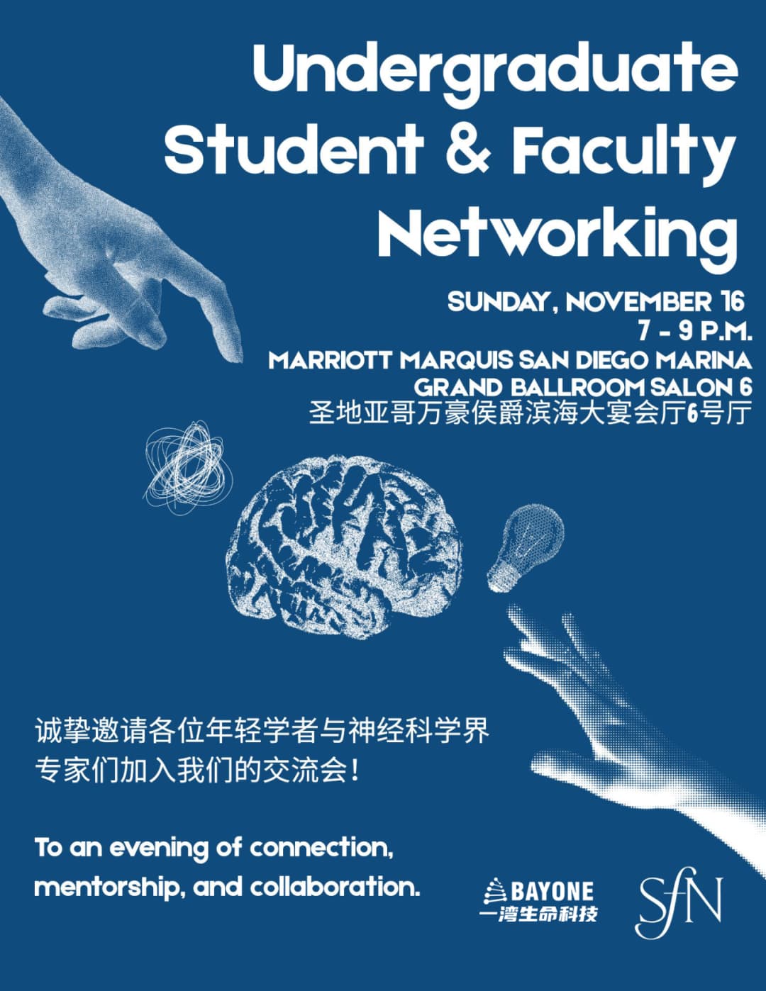 在本届 SfN 2025 年会期间,一湾生命科技同步策划并组织了“SfN 2025 Networking Events”。作为今年全新推出的神经科学交流平台,该活动旨在取代以往由神经科学学会主办的社交聚会与学术交流环节,为参会者营造更为聚焦、高效的互动体验。活动中,邀请到 6 名科学家作为嘉宾,吸引超过百名学生学生们深入了解了神经科学的前沿研究方向、职业发展路径与实际应用前景。借助这一平台,更多初涉学术领域的年轻学子得以建立有意义的人际网络,拓展专业视野,从而激发其在神经科学领域的科研与创新潜能。