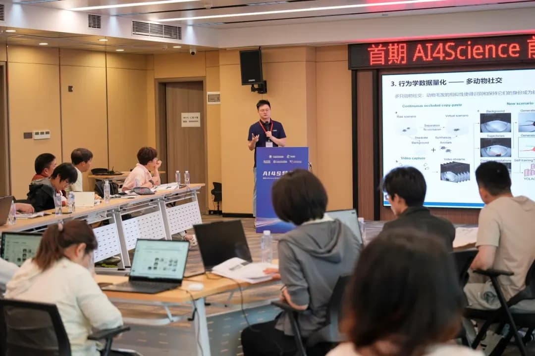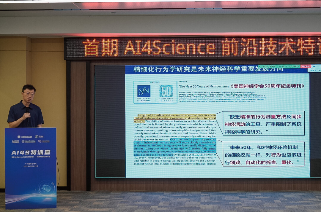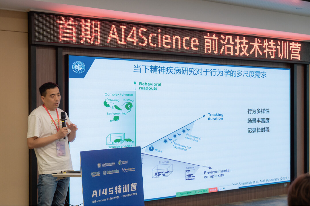 「首期 AI4Science 前沿技术特训营——计算神经行为学专题」 汇聚了多位计算神经行为学领域的专家教授 ,包括:东南大学蔚鹏飞教授、中科院深圳先进院王枫研究员、复旦大学脑科学研究院陈明研究员、空军军医大学西京医院赵广超研究员、中科院深圳先进院周涛研究员。来自全国知名高校的 30 余位专家们(神经科学家 × AI 算法工程师 × 临床医生)凝心聚力、齐心协作,围绕 AI 技术与精细行为表型分析技术在脑疾病研究中的应用展开深入研讨,合力推动数字化疾病动物模型表型技术发展!