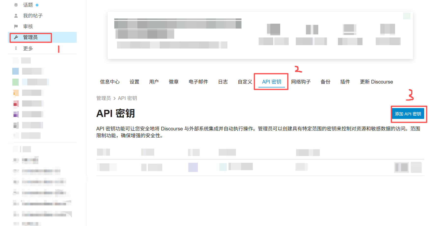 在编写脚本前,您需要从 Discourse 管理后台获取授权凭证: