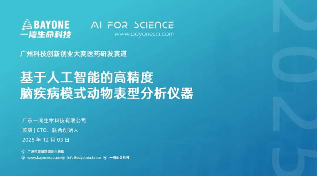 2026年1月28日,“创在广州”第十四届中国创新创业大赛(广东·广州赛区)暨 2025 年广州科技创新创业大赛行业赛医药研发赛道决赛结果揭晓。一湾生命科技(BAYONE)凭借其前沿的 3D-AI 精细行为表型技术优势与清晰的发展规划,荣获医药研发行业赛优秀奖,为企业创新历程再添一项重要荣誉。