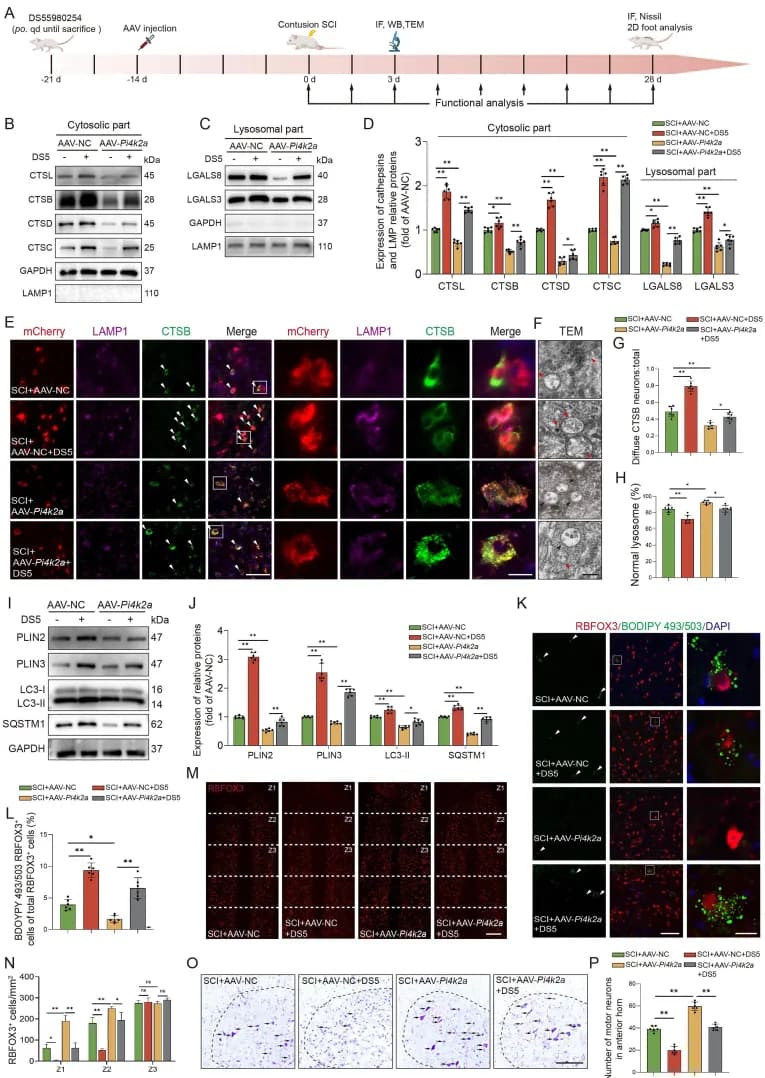 体内神经元特异性过表达 PI4K2A,通过 PS 依赖方式缓解 SCI 小鼠神经元溶酶体损伤、减少神经元死亡