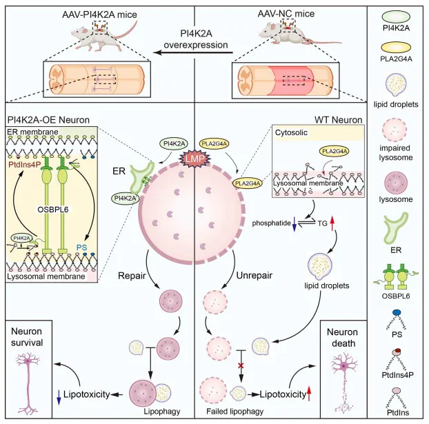 PI4K2A-OSBPL6 轴通过恢复自噬流、激活脂自噬,清除脂滴并抑制神经元凋亡