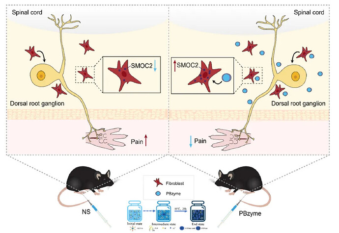 2. 揭示全新分子机制: 首次建立 “PBzymes–DRG 成纤维细胞–SMOC2–神经元兴奋性” 的完整镇痛信号轴。